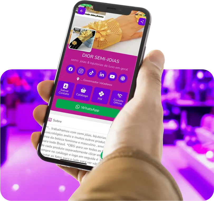 O melhor Link na Bio para suas redes! Transforme cliques em vendas pelo WhatsApp com lucro 100% seu no seu catálogo digital.